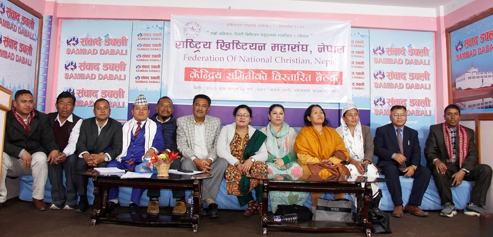 काठमाडौं । राष्ट्रिय ख्रिष्टियन महासंघ नेपाल केन्द्रीय समितिको विस्तारित बैठकले देशका सात वटै प्रदेशमा प्रदेश संयोजकको जिम्मेवारी तोकेको छ । सोमबार राजधानीको संवाद डबलीमा सम्पन्न भएको सो बैठकले प्रत्येक मण्डलीमा सचेतना तथा स्थानिय तहसम्म संगठन विस्तार गर्ने समेत निर्णय गरेको छ ।