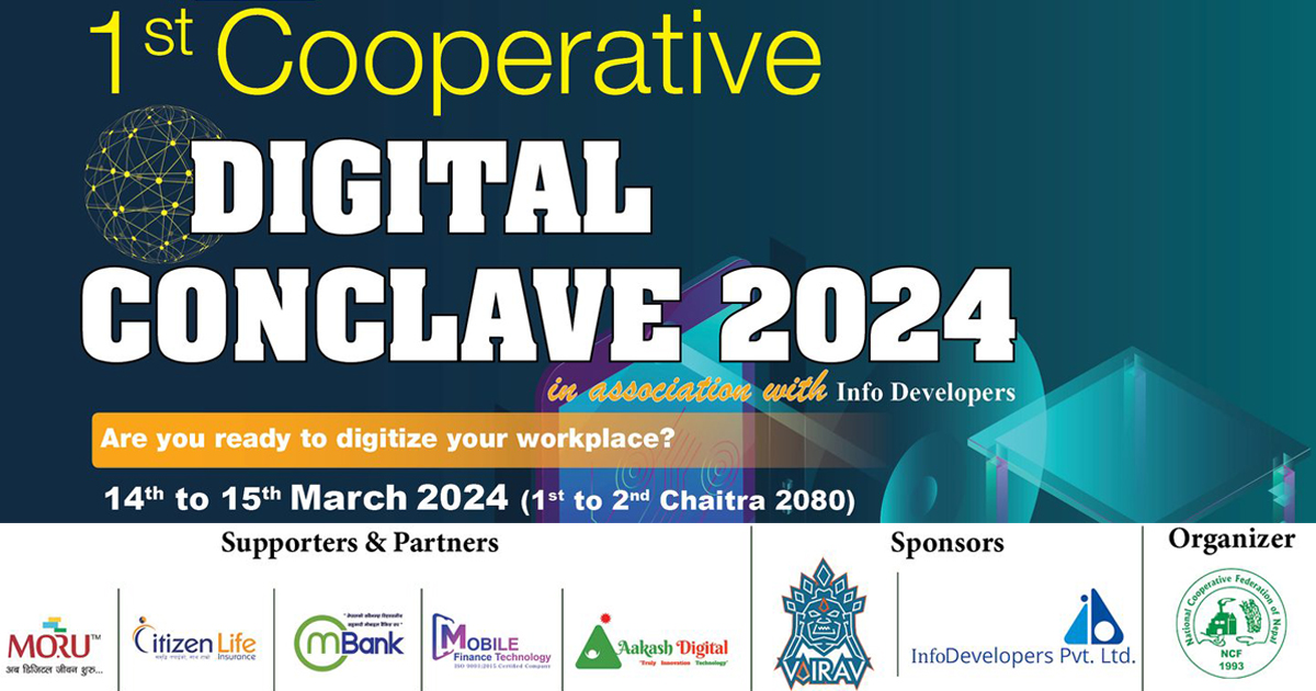 काठमाडौं । राष्ट्रिय सहकारी महासंघको आयोजनामा यही चैत १ र २ गते याक एण्ड यति होटलमा हुने ‘प्रथम सहकारी डिजिलट कन्क्लेभ’को तयारी अन्तिम चरणमा पुगेको छ । ‘डिजिटाइजिङ को–अपरेटिभस्, एटेन्डिङ भिजन २०३०’ भन्ने थिमका साथ नेपालको सहकारी अभियानको इतिहासमा नै पहिलो पटक डिजिटल कन्क्लेभ हुन लागेको हो ।