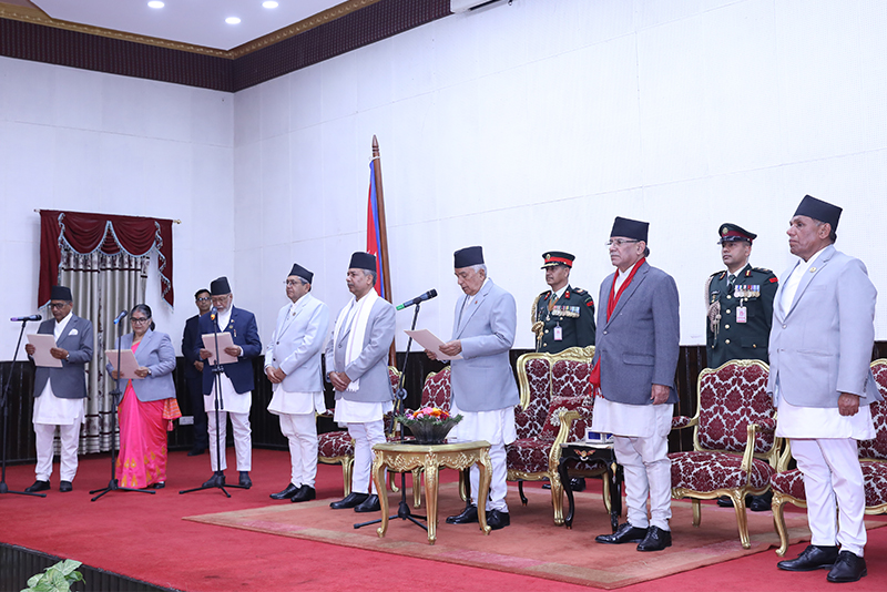 काठमाडौं । राष्ट्रपति रामचन्द्र पौडेलले तीन नवनियुक्त प्रदेश प्रमुखहरूलाई पद तथा गोपनीयताको शपथ गराएका छन् । बुधबार शीतल निवासमा तीन प्रदेश प्रमुखले राष्ट्रपति रामचन्द्र पौडेलबाट शपथ ग्रहण गरेका हुन् ।