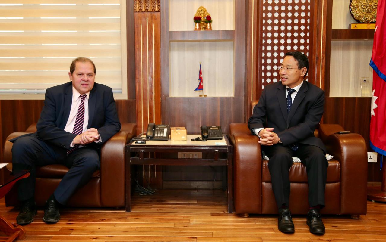 काठमाडौं । अर्थमन्त्री वर्षमान पुनले ठूला जलविद्युत् आयोजना र रासायनिक मल कारखानामा लगानी गर्न रुसलाई आग्रह गरेका छन् । नवनियुक्त अर्थमन्त्री पुनलाई बधाई ज्ञापन गर्न आज अर्थ मन्त्रालय आइपुगेका नेपालका लागि रुसी राजदूत अलेक्सेई नोभिकोभसँग अर्थमन्त्री पुनले यस्तो आग्रह गरेकाे उनकाे सचिवालयले जनाएको छ ।