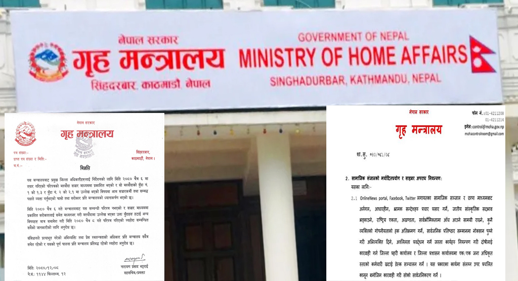 गृह मन्त्रालयले विहिबार यसअघि चैत्र ६ मा तयार गरिएको परिपत्रको मस्यौदालाई सच्याएर परिपत्र गरिएको जानकारी दिएको छ । यसअघि पठाइएको २१ बुँदे निर्देशनको दुई नम्बर बुँदामा सामाजिक सञ्जालको मर्यादित प्रयोग र साइबर अपराध नियन्त्रण सम्बन्धी उल्लेख गर्दै त्यसमा अनलाइन न्युज पोर्टल समेत उल्लेख गरिएको थियो ।