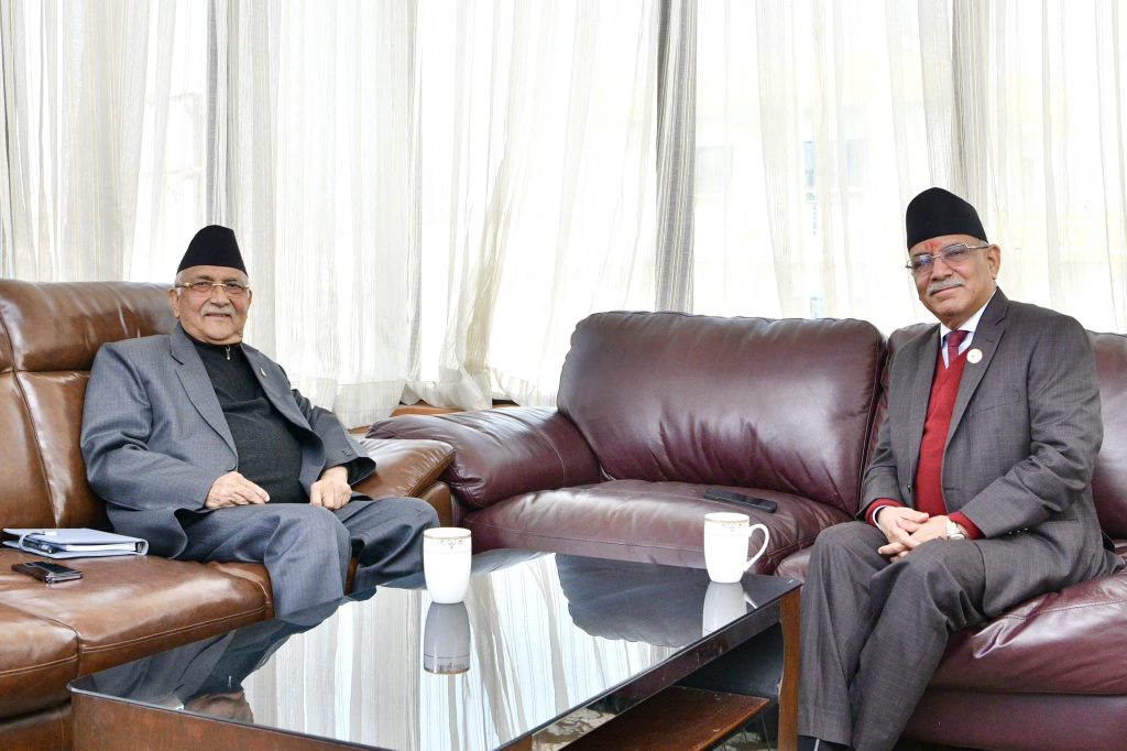 काठमाडौं । प्रधानमन्त्री पुष्पकमल दाहाल ‘प्रचण्ड’ र नेपाल कम्युनिष्ट पार्टी (एमाले)का अध्यक्ष केपी शर्मा ओलीबीच छलफल भएको छ ।