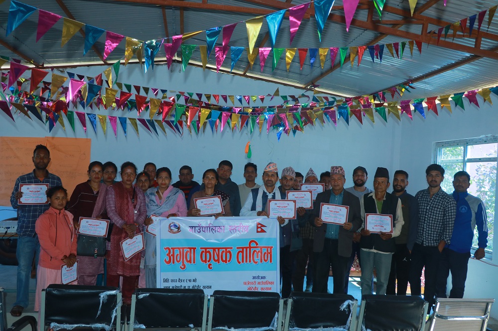 धान, गहुँ, मकै, काउली, आलु लगाएत सुन्तला जातका फलफुलमा लाग्ने रोग किरा व्यवस्थापन र कृषि विमाका बारेमा अगुवा कृषकलाई तालिम प्रदान गरिएको कृषि विकास शाखाले जनाएको छ ।