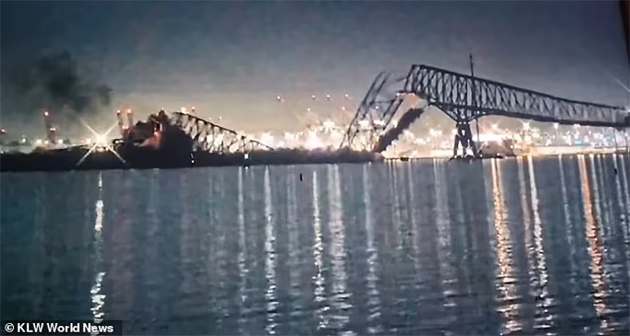 वाशिंगटन । अमेरिकाको बाल्टिमोरमा एउटा कार्गो जहाज ठोक्किएपछि ‘फ्रान्सिस स्कट ब्रिज’ को एक भाग भत्किएको छ । न्युयोर्क टाइम्सका अनुसार अमेरिकी समय अनुसार बिहान करिब १स् ३० बजे जहाज पुलसँग ठोक्किएको थियो । त्यसपछि आगो लाग्यो र जहाज डुब्यो ।