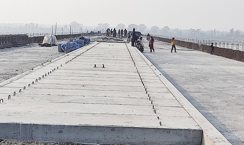 उनले ८ दशमव ६ किलोमिटर छ लेनको पहुँच मार्गमध्ये एक हजार पाँच सय मिटर सडक कालोपत्रे गर्न बाँकी रहेको बताए । “रकम अभावलगायतको कारण नभए छ महिनाभित्र पुलको सबै काम सकिन्छ”, इन्जिनियर पाण्डेयले भने, “कोरोना कहर, रकम अभाव र भेरियसन, डिजाइन स्वीकृतिलगायतका कारणले पुल निर्माणमा ढिलाइ भयो ।”