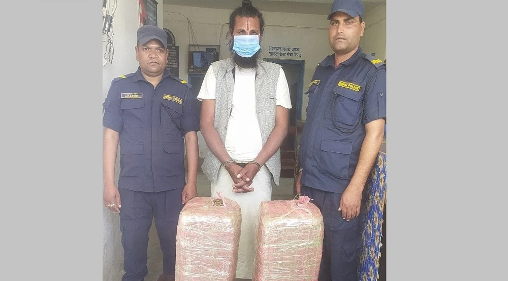 रौतहट । रौतहट स्थित जिल्लाको पश्चिमी भेगबाट प्रहरीले लागूऔषध गाँजासहित साधुको भेषमा रहेका एकजना मानिसलाई प्रहरीले पक्राउ गरेको छ। चन्दन टिका लगाएर साधुको भेषमा रहेका फतुवाबिजयपुर नगरपालिका ११ भैसही टोलका ६३ वर्षीय दयालाल पैसवानलाई साढे १७ किलो ग्राम लागूऔषध गाँजा सहित शुक्रवार पक्राउ गरिएको जिल्ला प्रहरी प्रवक्ता डिएसपी एलिजा गिरीले बताइन्।