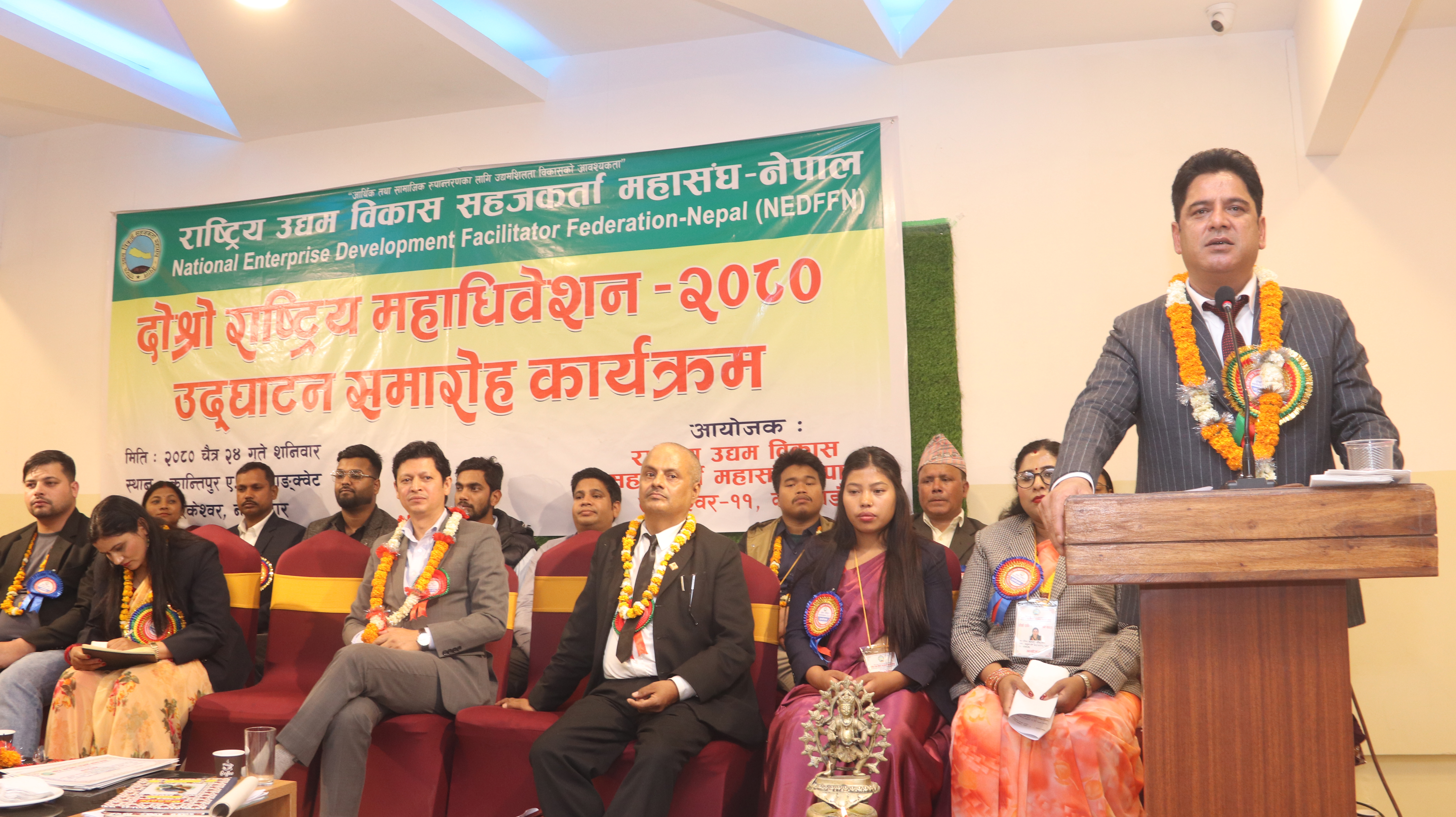 राष्ट्रिय उद्यम विकास सहजकर्ता महासङ्घ नेपालको काठमाडौंमा आयोजित दोस्रो राष्ट्रिय महाधिवेशनको उद्घाटन कार्यक्रममा आज उनले स्वदेशी वस्तुमा आधारित उत्पादनलाई सरकारले प्राथमिकता दिएको उल्लेख गर्दै नेपाली उत्पादन उपभोग गर्नुपर्नेमा जोड दिए । उनले स्वदेशी वस्तु उत्पादनमा सरकाले सहुलियत प्रदान गर्ने पनि बताए ।