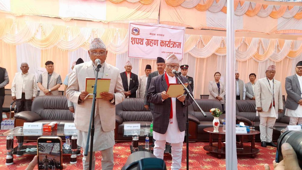 बुटवल । लुम्बिनी प्रदेशका नवनियुक्त मुख्य मन्त्री जोखबहादुर महराले शपथ लिएका छन् । शनिबार नियुक्त भएका महराले आइतबार प्रदेश प्रमुख अमिक शेरचनसँग पद तथा गोपनीयताको शपथ ग्रहण गरेका हुन् ।