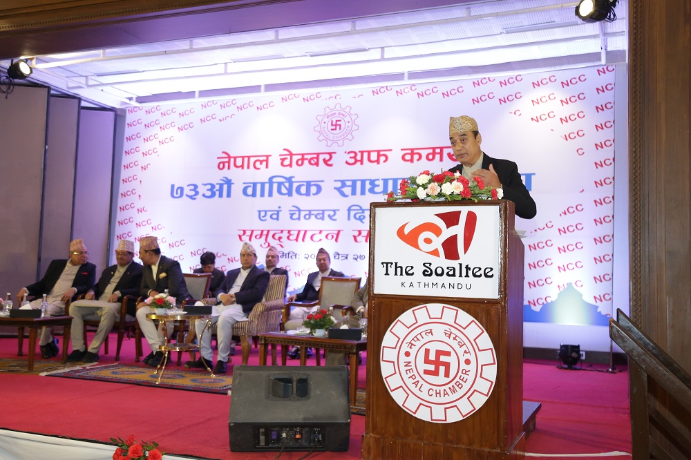 चेम्बरको ७३ औं वार्षिक साधारणसभालाई उद्घाटन गर्दै उपप्रधान एवं परराष्ट्रमन्त्री नारायणकाजी श्रेष्ठले आर्थिक विकास र समृद्धिको कार्यभार पुरा गर्न सरकार प्रयासरत रहेको बताए । आर्थिक उन्नतीका लागि निजी क्षेत्रको प्रर्वद्धन र सुरक्षा गर्न सरकार अत्यन्तै गम्भिर रहेको उनको भनाइ छ ।