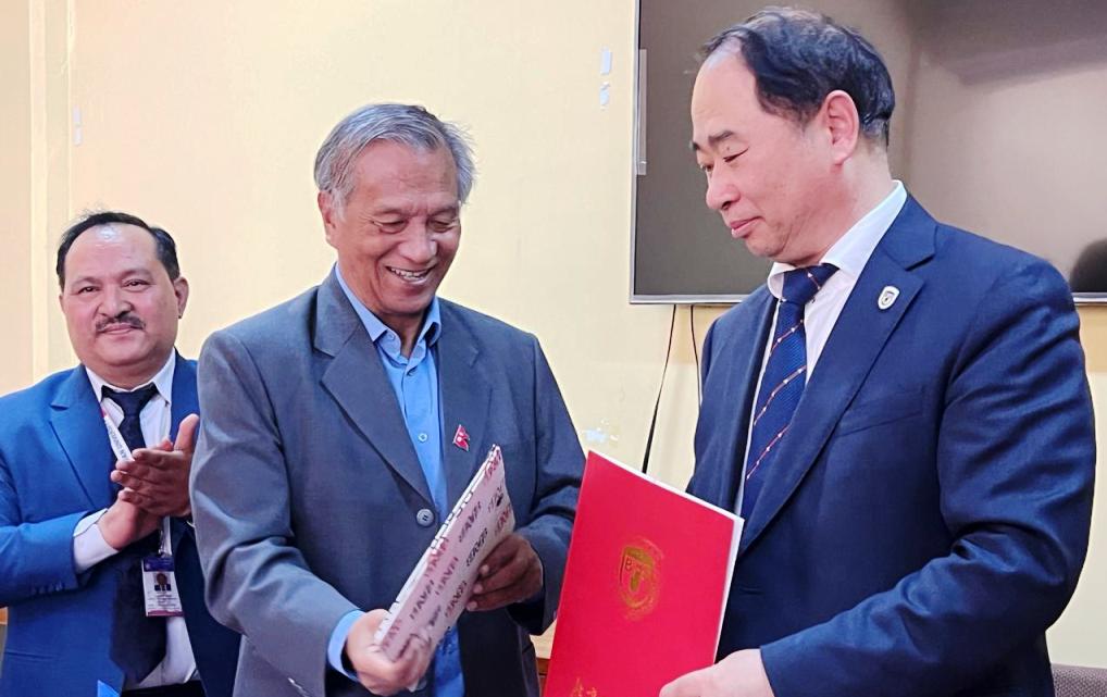 त्रिभुवन विश्वविद्यालयका उपकुलपति प्रा डा केशरजङ्ग बराल तथा बेइजिङ फरेन स्टडिज विश्वविद्यालय परिषद्का अध्यक्ष प्राध्यापक डा वाङ डिङह्वाबीच यससम्बन्धी सम्झौतामा आज हस्ताक्षर भयो ।