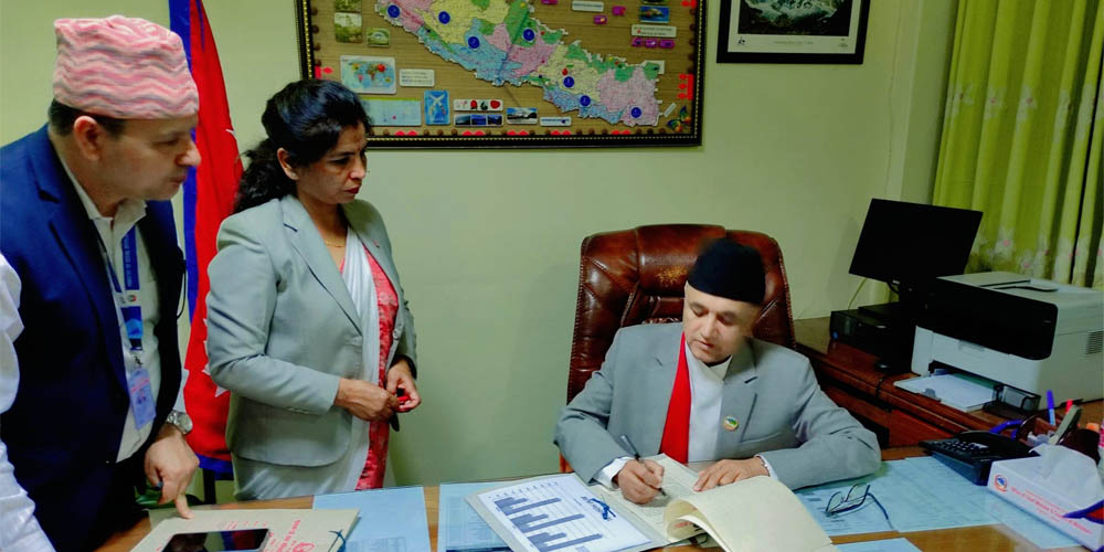 प्रदेश प्रमुख डिल्लीराज भट्टले अधिकारीलाई आइतबार मुख्यमन्त्री पदमा नियुक्त गरेका थिए। माओवादीबाट सभामुख रहेका कृष्ण धितालको हस्ताक्षरसमेत मुख्यमन्त्री बनाउन प्रयोग गरिएको थियो।