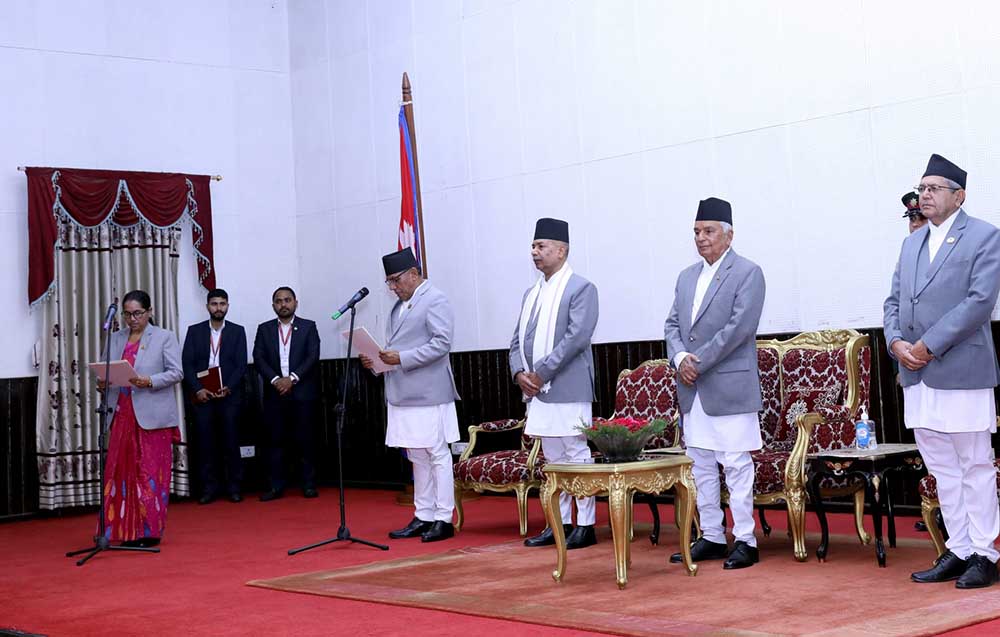 काठमाडौं । राष्ट्रपति रामचन्द्र पौडेलको समुपस्थितिमा राष्ट्रियसभाका नवनिर्वाचित उपाध्यक्ष विमला घिमिरेले पद तथा गोपनीयताको शपथ लिएकी छन् ।