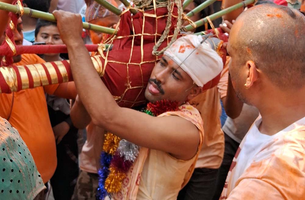 काठमाडौँ । सुजन बाग श्रेष्ठले दोस्रो पटक जिब्रो छेडेका छन् । बिस्काः जात्राको अवसरमा २८ बर्षिय सुजनले आइतबार जिब्रो छेडेका हुन् । उनले अघिल्लो वर्ष पनि जिब्रो छेडेका थिए ।