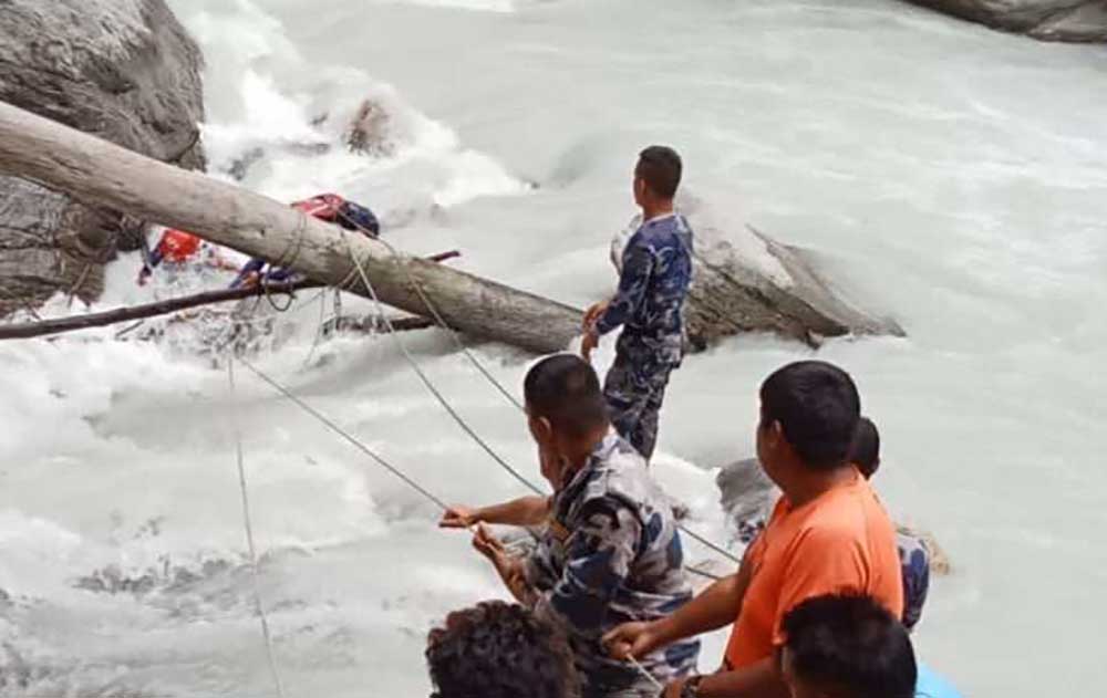 सेती नदीको १५० मिटर गहिराईमा ढुंङ्गामा अड्किएको अवस्थामा युवकको शव सोमबार सशस्त्र प्रहरी बलको गोताखोर टोलीले निकालेको छ ।
