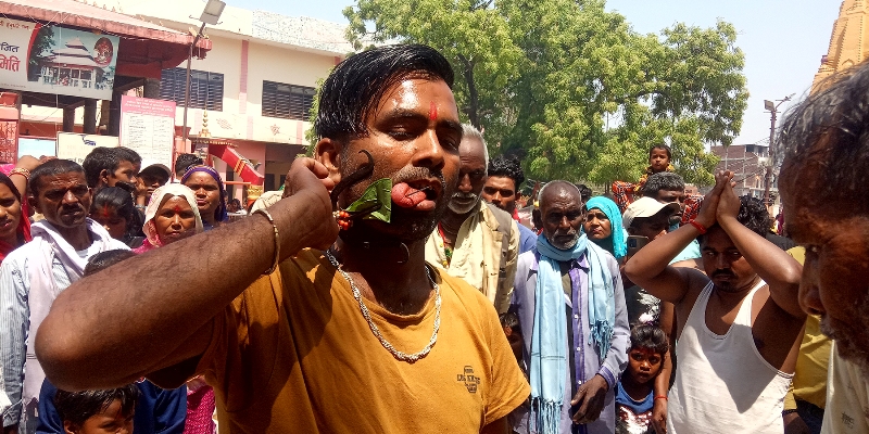भारतको रुपैडिहा बागमराका ६५ वर्षीय रमेश प्रजापतिले विगत १५ वर्षदेखि निरन्तर नेपालगञ्जस्थित बागेश्वरी मन्दिरमा आएर जिब्रो छेडेर दर्शन गर्ने गरेका छन् । जिब्रो छेड्ने लाइनमा लागेका आधा दर्जन बढी युवालाई पछि पार्दै अनुभवी प्रजापतिले १५औँ पटक जिब्रो छेडेर बागेश्वरी मन्दिरको दर्शन गरे ।