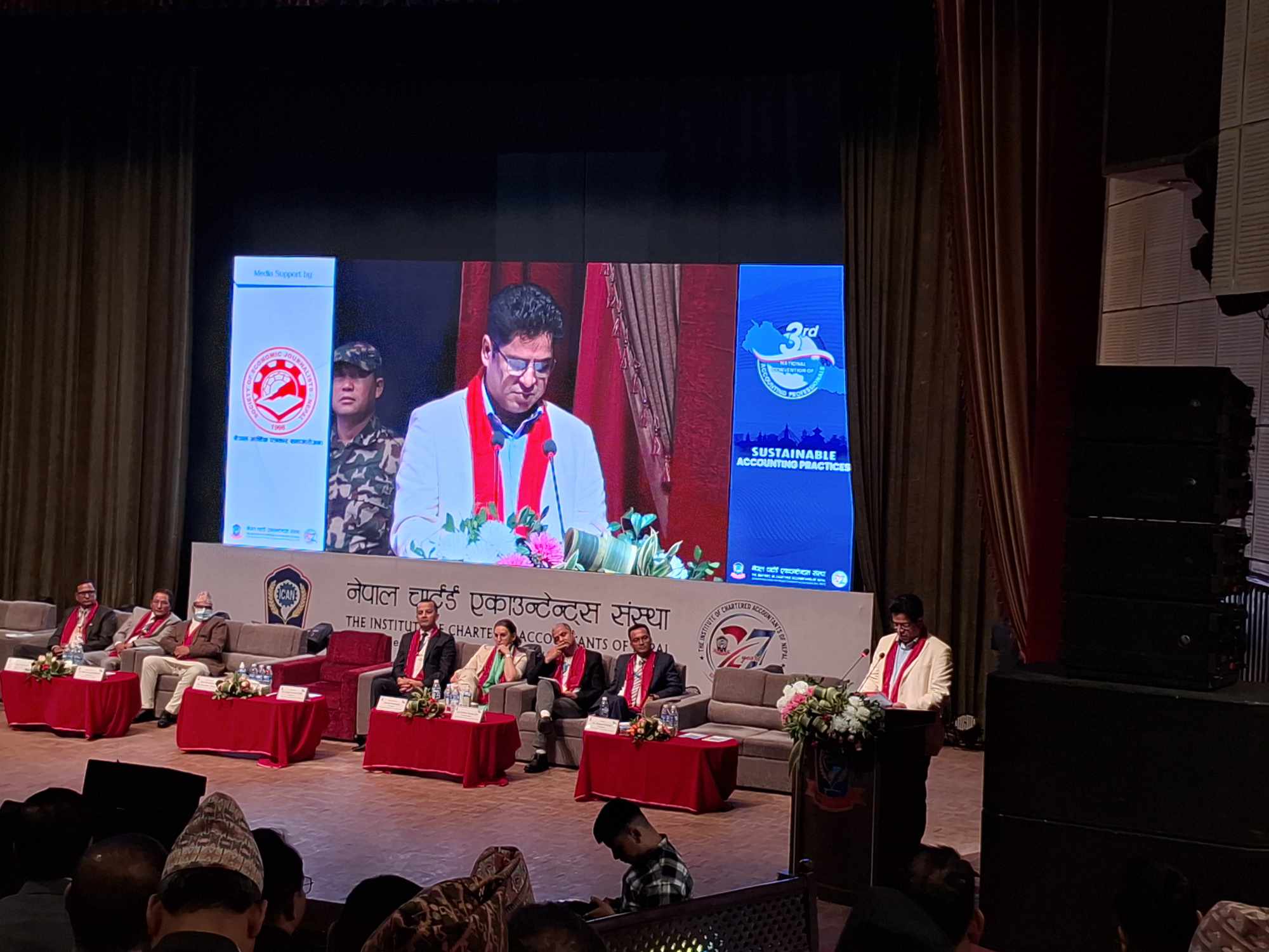 नेपाल चार्टर्ड एकाउन्टेन्ट्स संस्थाले आयोजना गरेको ‘सस्टेनेवल अकाउन्टिङ प्राक्टिसेस’ विषयक तेस्रो राष्ट्रिय लेखाव्यवसायी सम्मेलनको उद्घाटन समारोहमा उहाँले अर्थतन्त्रका केही परिसूचक सुधारोन्मुख रहेको वर्तमान अवस्थामा व्यापार व्यवसाय तथा स्वदेशी उद्योग धन्दा विकासको माध्यमबाट अर्थतन्त्रलाई अझ चलायमान बनाउन आवश्यक देखिएको बताए।