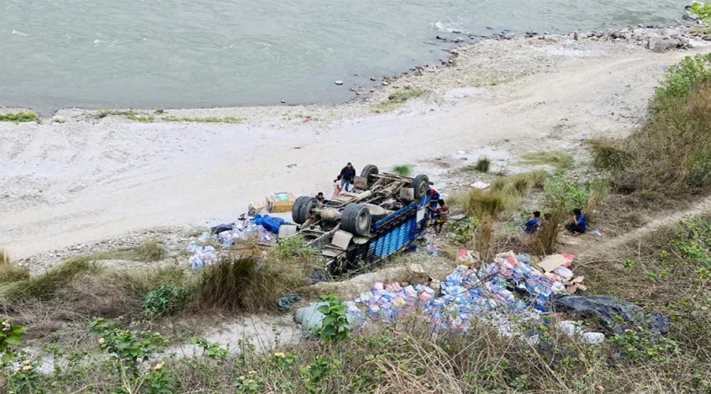ट्रक सडकबाट ४५ मिटर तल ट्रक खसेको प्रहरीले जनाएको छ । काठमाडौँबाट खोटाङ हलेशी तर्फ जाँदै गरेको बा ५ ख ७१४० नम्बरको ट्रक आफै अनियन्त्रित भई सुनकोशी नदीको किनारमा खसेको बागमती प्रदेश प्रहरी कार्यालयले जानकारी दिएको छ ।