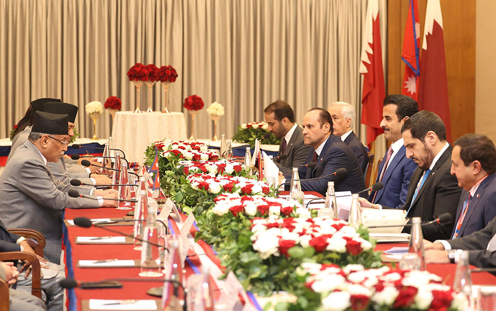 काठमाडौँ । प्रधानमन्त्री पुष्पकमल दाहाल प्रचण्ड र कतारका राजा शेख तमिम बिन हमाद अल थानीबीच द्विपक्षिय भेटवार्ता शुरु भएको छ ।
