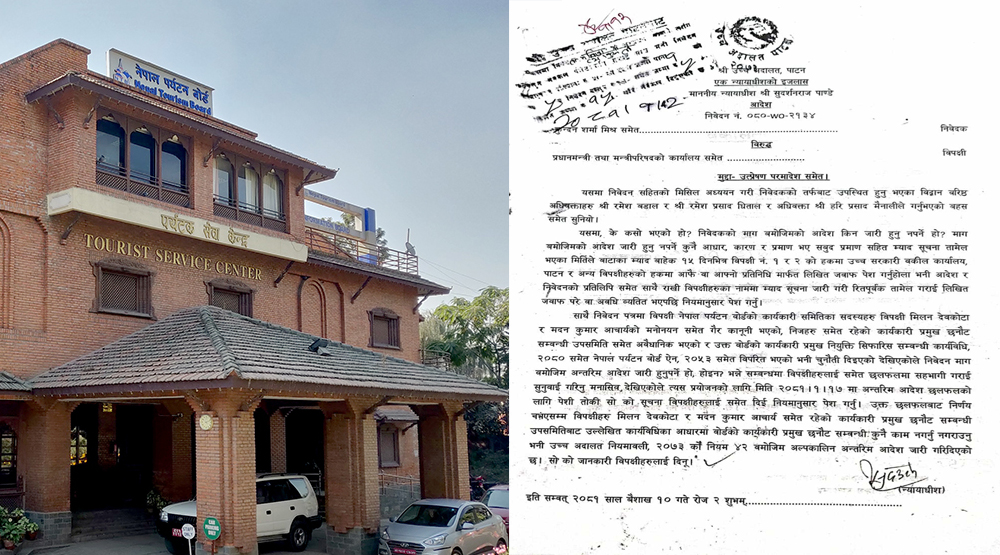 काठमाडौं । नेपाल पर्यटन बोर्डका प्रमुख कार्यकारी अधिकृत छनोट सम्बन्धी कुनै पनि काम नगर्न नगराउन उच्च अदालत पाटनले अल्पकालीन अन्तरिम आदेश जारी गरेको छ । पर्यटन बोर्डमा रिक्त सीईओ नियुक्तिका लागि छनोट गर्न गठित उपसमितिका सदस्य तथा बोर्ड सञ्चालक समिति सदस्यहरू मिलन देवकोटा र मदनकुमार आचार्यको मनोनयसमेत गैरकानुनी भएको र छनोट उपसमिति पनि अवैधानिक रहेको भन्दै उच्च अदालत पाटनले अल्पकालीन अन्तरिम आदेश जारी गरेको हो ।