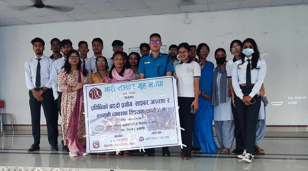 नारी सञ्चार गृह झापाकी अध्यक्ष रेजिना गौतमको अध्यक्षतामा बिर्तामोड नगरपालिका नं ४ वडका वडा अध्यक्ष राहुल शर्माको प्रमुख आतिथ्यता रहेको कार्यक्रममा शर्माले प्रविधि प्रयोग गर्दा हुने जोखिमबारे सबैलाई सचेत गराउनु पर्ने बताए ।