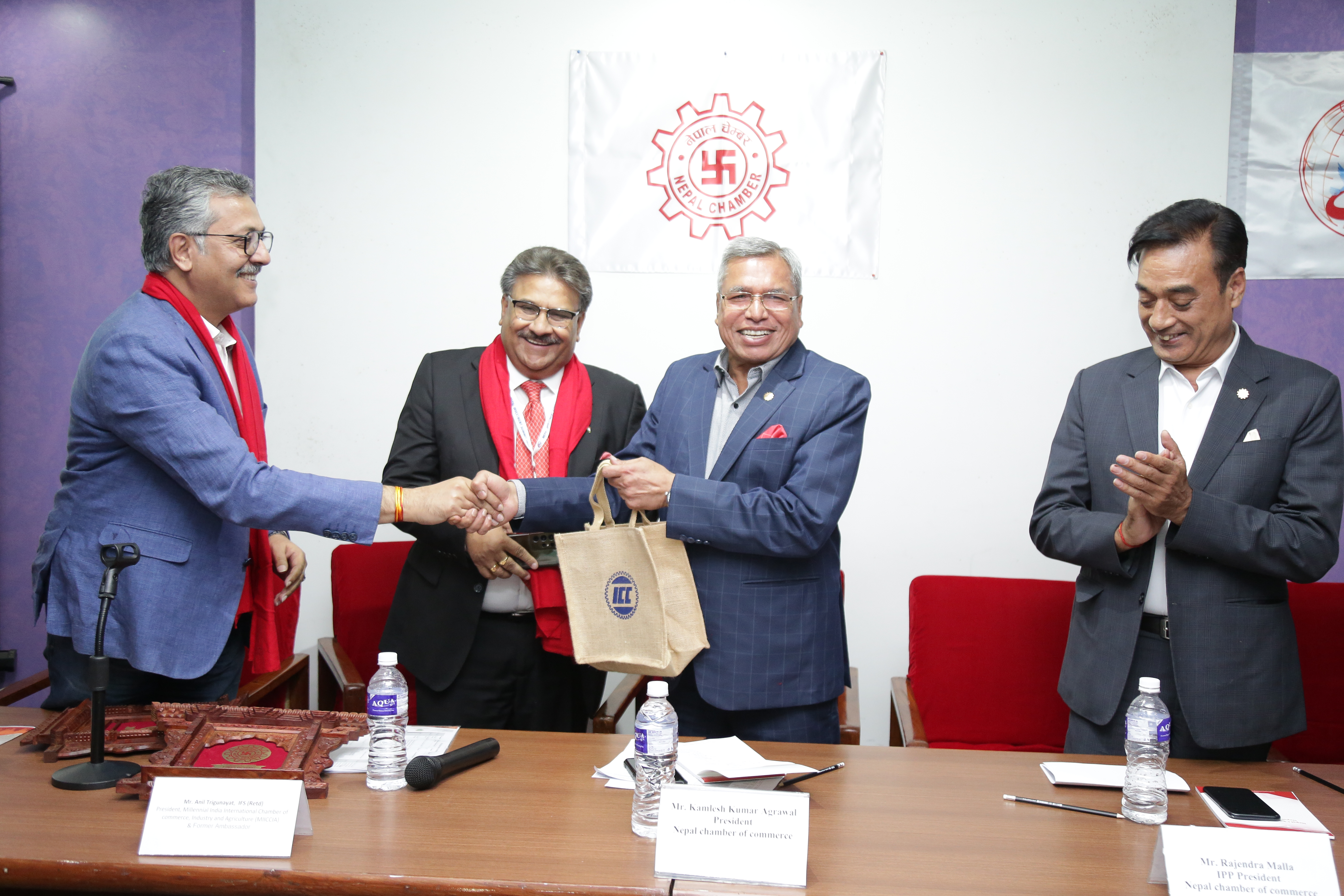 नेपाल चेम्बर अफ कमर्सको निमन्त्रणमा इण्डियन चेम्बर र मिलेनियल चेम्बर अफ कमर्सका पदाधिकारीहरु एवं व्यवसायिक प्रतिनिधीमण्डल नेपाल आएका हुन । दुवै चेम्बरका पदाधिकारीलाई नेपाल चेम्बर अफ कमर्सका अध्यक्ष कमलेश अग्रवालले जमलस्थित चेम्बर भवनमा स्वागत गरेका थिए ।