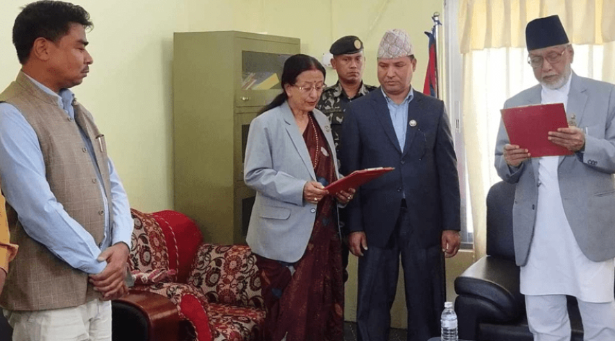 कैलाली । सुदूरपश्चिम प्रदेश सरकारको भूमि व्यवस्था कृषि तथा सहकारी मन्त्रीमा नव नियुक्त नागरिक उन्मुक्ति पार्टीकी सांसद टीका थापाले पद तथा गोपनीयताको शपथ लिएकी छिन् । थापालाई प्रमुख नजिर मियाँले पद तथा गोपनीयताको शपथ गराएका हुन् ।