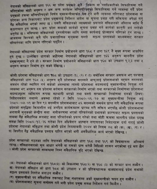 तर मुख्यमन्त्री कार्कीले संकल्प प्रस्ताव संबिधान विपरित भएको भन्दै विश्वासको मत पनि नलिने र राजीनामा पनि नदिने अडान राख्दै आएका छन् ।