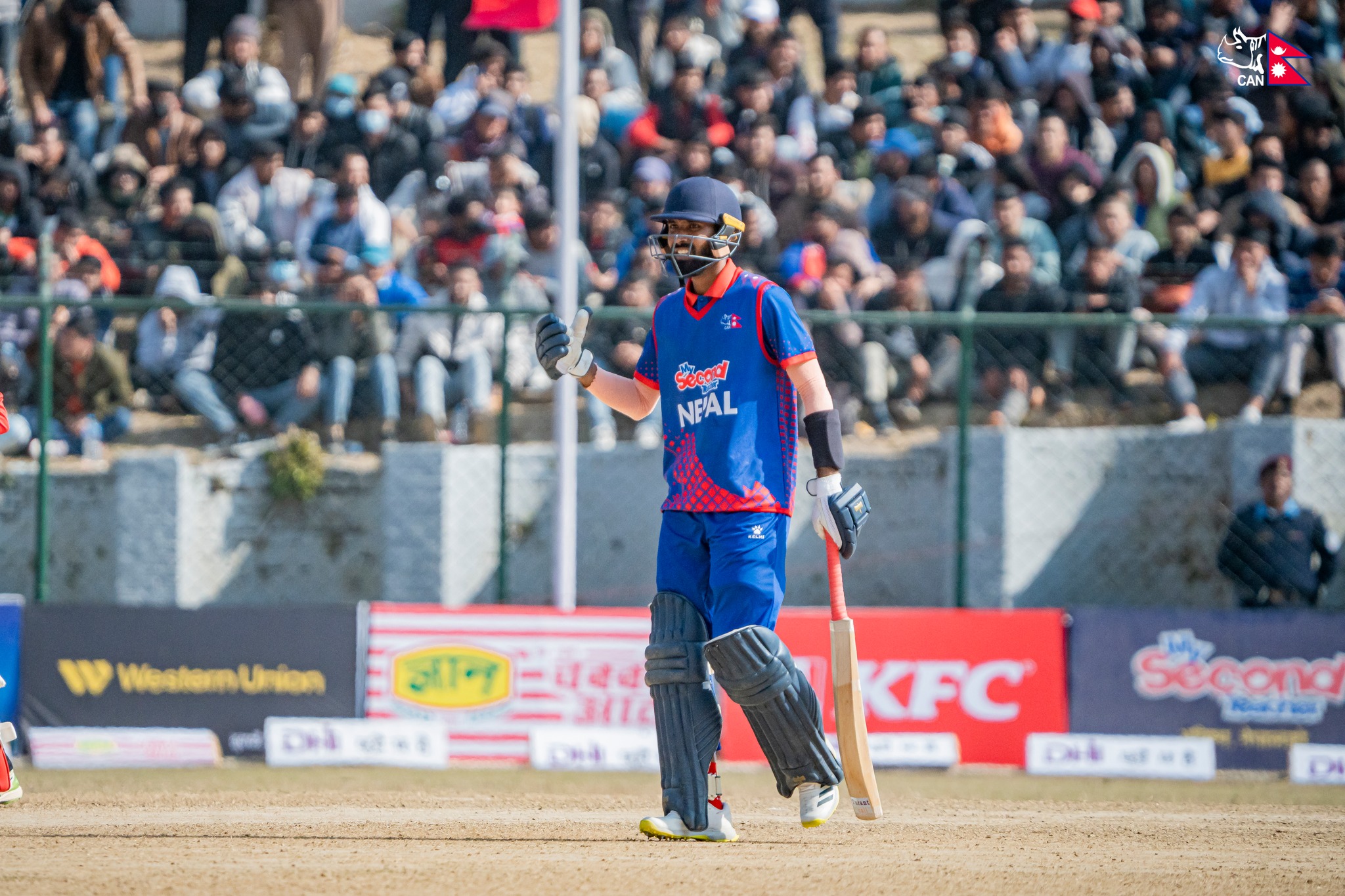 अनिलले ४१ बलमा ४ चौका र ३ छक्का प्रहार गर्दै आफ्नो अर्धशतक पुरा गरेका हुन् ।