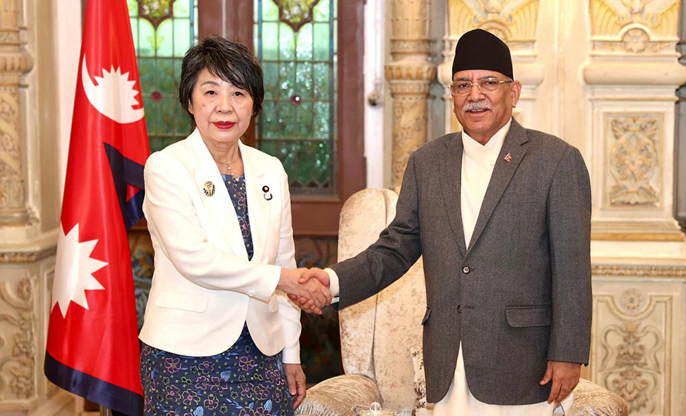 काठमाडौं । प्रधानमन्त्री पुष्पकमल दाहाल प्रचण्डसँग जापानी विदेशमन्त्री खामिखावा योकोबीच भेटवार्ता भएको छ । एक दिने नेपाल भ्रमणमा आएकी जापानी विदेशमन्त्रीसँगको भेटवार्तामा दुई पक्षीय हितका बारेमा छलफल भएको प्रधानमन्त्रीको सचिवालयले जनाएको छ ।