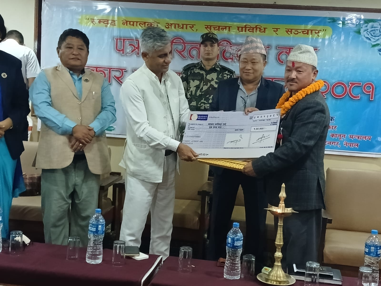 मोरङ । कोशी प्रदेश सरकारले आज यहाँ पाँच जना पत्रकारलाई सम्मान गरेको छ । आन्तरिक मामिला तथा कानुन मन्त्रालयद्वारा अनवरत २५ वर्षभन्दा बढी पत्रकारिता गर्नुभएका विभिन्न जिल्लाका पाँच जना पत्रकारलाई नगद रु एक लाखसहित सम्मान एवं पुरस्कृत गरेको हो ।