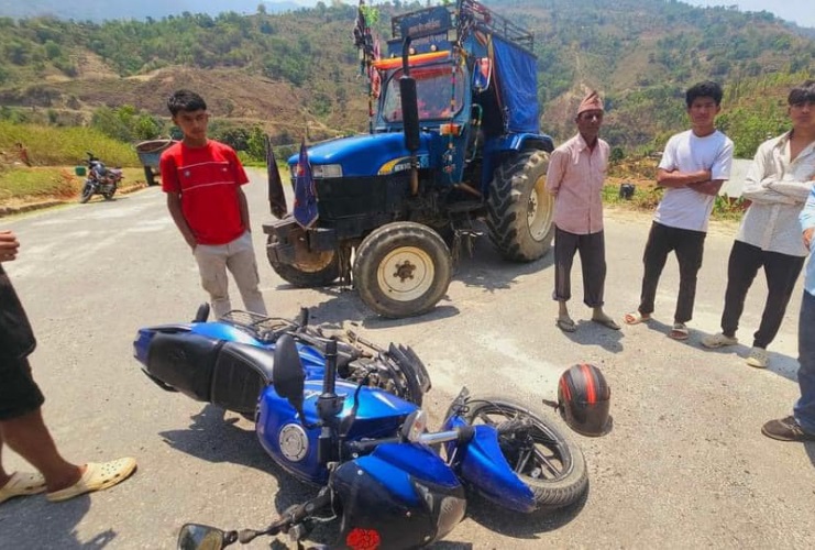 उनीहरू सवार से ६ प ७९९९ नम्बरको मोटरसाइकल तुमाखाँद गाउँपालिका–८ का रोशन रिमालले चलाएको सुदूरपश्चिम प्रदेश ०१–००२ त ६४८१ नम्बरको ट्याक्टरसँग ठोकिएर दुर्घटना भएको हो ।