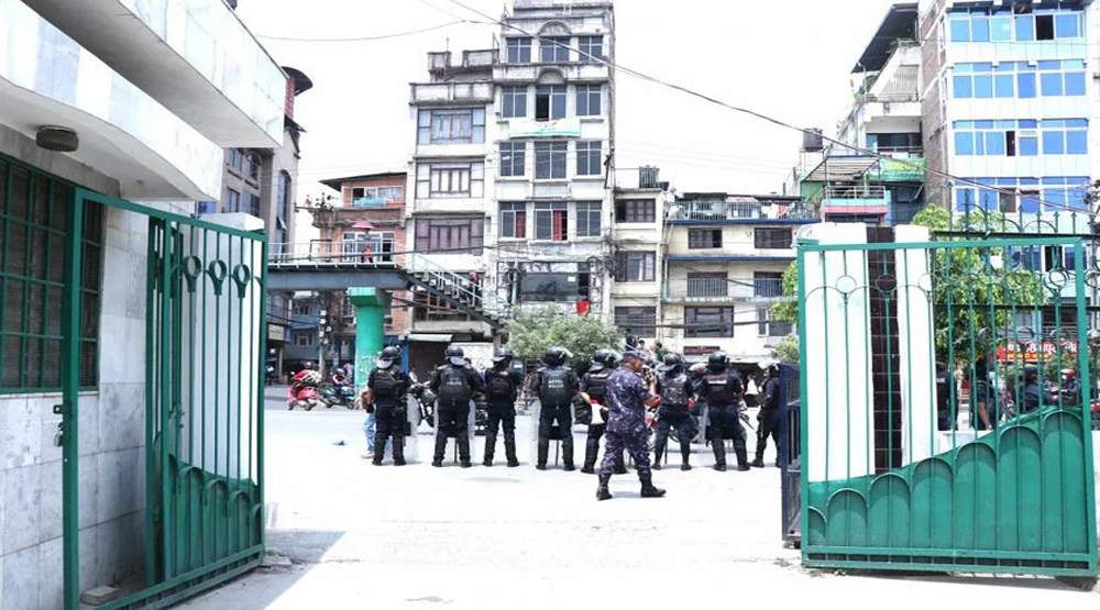 काठमाडौं । नयाँ बानेश्वरस्थित संसद् भवनभित्र प्रवेश गर्ने गेटमा सुरक्षा कडाइ गरिएको छ । संसद् बैठक सुरु हुनुअघि प्रवेशद्वारमा सुरक्षा कडाइ गरिएको हो ।
