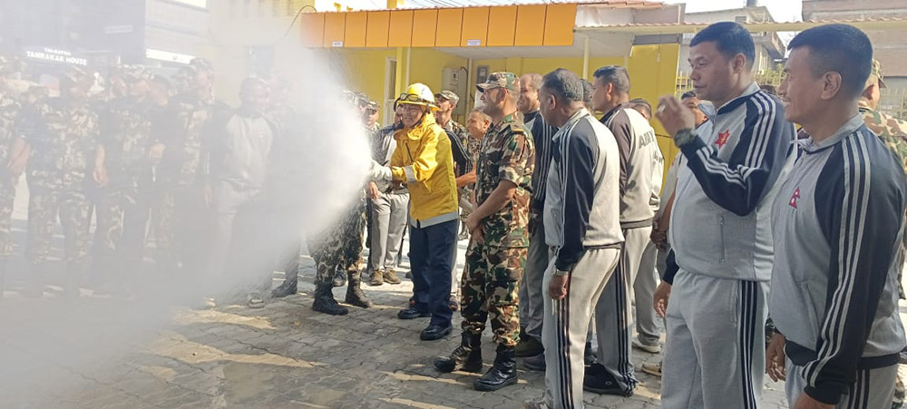 काठमाडौं । काठमाडौं महानगरपालिकाको आयोजनामा नेपाली सेनाका पेट्रोल पम्पमा काम गर्ने ३० जना कर्मचारीका लागि अग्नि सुरक्षा सम्बन्धी तालिम प्रदान गरिएको थियो । हिजो र आज गरी २ दिन चलेको तालिमको पहिलो दिन सैद्धान्तिक र दोस्रो दिन प्रयोगात्मक सिप सिकाइएको थियो ।