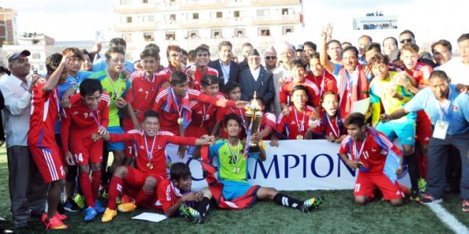 \"football\"काठमाडाैं । अखिल नेपाल फुटबल सङ्घ(एन्फा)ले यही भदौ १२ गते सम्पन्न उन्नाइस वर्षमुनि उमेर समूहको पहिलो साफ च्याम्पियसिप फुटबल प्रतियोगिताको उपाधि विजेता नेपाली युवा टोलीका खेलाडीलाई जनही रु दुई लाख दिने भएको छ । सातदोबाटोस्थित एन्फा क्म्प्लेक्समा एन्फा अध्यक्ष एवम् सभासद् गणेश थापाको अध्यक्षतामा बसेको कार्यसमितिको बैठकले युवा टोलीको सम्मानका लागि एन्फामा आबद्ध ४५ जिल्ला फुटबल सङ्घबाट रु एक एक लाख सङ्कलन गर्नाका साथै विभिन्न सङ्घसंस्थासँग समन्वयन गरी पुरस्कृत गर्ने निर्णय गरेको एन्फाले जनाएको छ । सो प्रतियोगितामा नेपालले फाइनलमा भारतलाई पराजित गर्दै उपाधि जितेको थियो । नेपाली फुटबलको इतिहासमा नेपालले २२ वर्षपछि पहिलो पटक अन्तर्राष्ट्रिय उपाधि हात पारेको थियो । त्यस्तै युवा तथा खेलकुदमन्त्री पुरुषोत्तम पौडेलले पनि उक्त टोलीलाई जनही रु एक लाख प्रदान गरिने घोषणा यसअघि नै गरिसकेका छन् ।