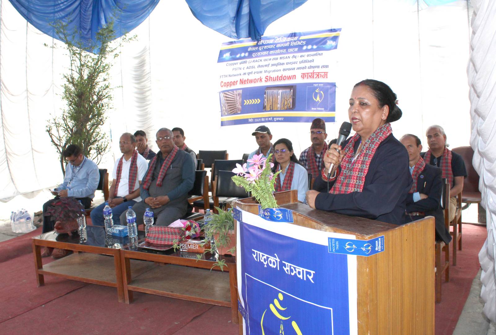 जेठ ११ गते दूरसञ्चार कार्यालय, पाटनमा आयोजित एक कार्यक्रममा प्रबन्ध निर्देशक संगीता पहाडी (अर्याल) ले पुरानो कपर प्रविधिमार्फत सञ्चालित सेवाबन्द गरेर एफटीटीएच नेटवर्कको उद्घाटन गरेकी हुन् ।
