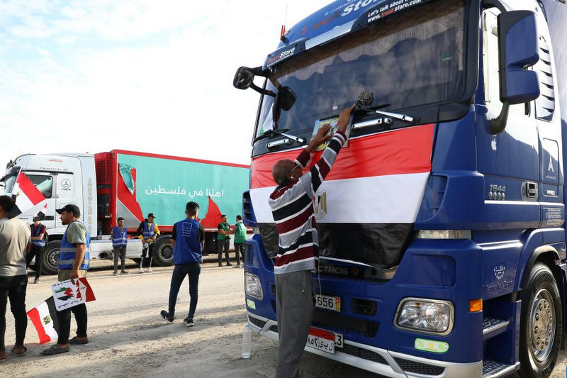 इजरायलले प्यालेस्टिनी क्षेत्र कब्जा गरेपछि मे सुरुदेखि बन्द गरेको इजिप्टपट्टीको राफाह सीमाबाट सहयोग सामग्री लिएर कूल २०० ट्रकहरू राफाहबाट लगभग चार किलोमिटर दक्षिणमा रहेको केरेम शालोम सीमातर्फ लागेका छन् ।