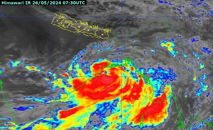बङ्गालको खाडीमा विकसित भएको न्यून–चापीय प्रणाली यही १२ गते साँझ चक्रवातमा परिणत भई हाल शक्तिशाली चक्रवातका रुपमा रहेको छ । उक्त चक्रवातको नाम ‘रेमल’ नामाङ्कन गरिएको छ । उक्त चक्रवात भारतको पश्चिम बङ्गाल तथा बङ्गलादेशको तटीय क्षेत्रीयतर्फ अगाडि बढिरहेको देखिन्छ ।