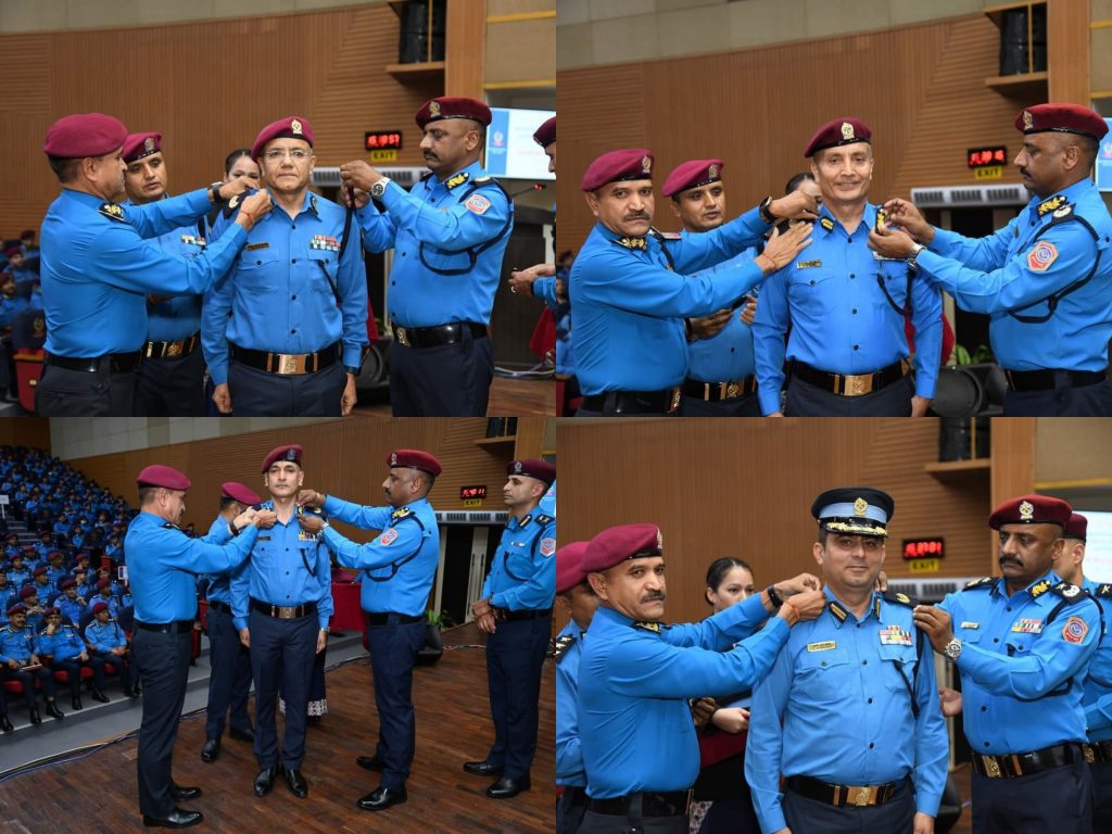 काठमाडौं । प्रहरी वरिष्ठ उपरीक्षक (एसएसपीबाट) पदोन्नति भएका चारजना प्रहरी अधिकृतलाई आज प्रहरी नायब महानिरीक्षक (डिआइजी)को दज्र्यानी चिह्न प्रदान गरिएको छ ।