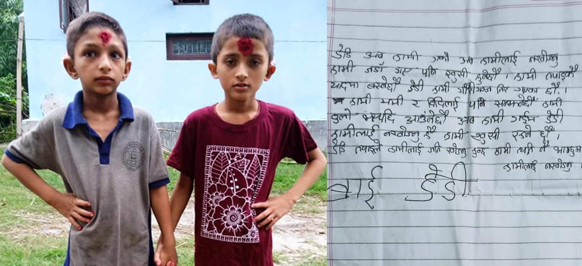 झापा । झापाको गौरादह नगरपालिका १ बेलडाँगी चोकबाट भागेका दुई दाजुभाइ मंगलबार राति भेटिएका छन् । भुपेन खड्काका छोराहरू १४ वर्षका खगेन्द्र खड्का र देव खड्का नाम गरेका दाजुभाइ सामाजिक सञ्जालमा पोस्ट भाइरल भएपछि भेटिएका हुन् ।