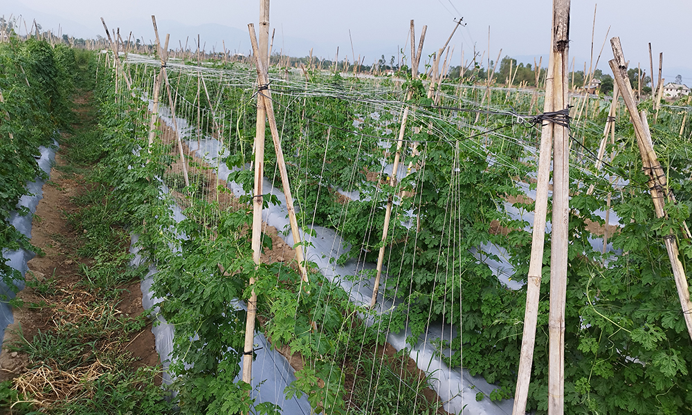 दाङ । बारीभरि टमाटर, करेला र काँक्रा लटरम्म फलेका छन् । भर्खरै टिपेको तरकारी बजार लैजाने तयारीमा देखिन्छन् । यो दृश्य घोराही उपमहानगरपालिका–६ लखुवारका स्रष्टा आचार्यले गरेको व्यावसायिक तरकारी बारीको हो । उनले चार बिघा चार कट्ठा जमिन भाडामा लिएर तरकारी खेती गरेका छन् । जग्गा भाडा मात्रै वार्षिक रु एक लाख २८ हजार तिर्छन् ।