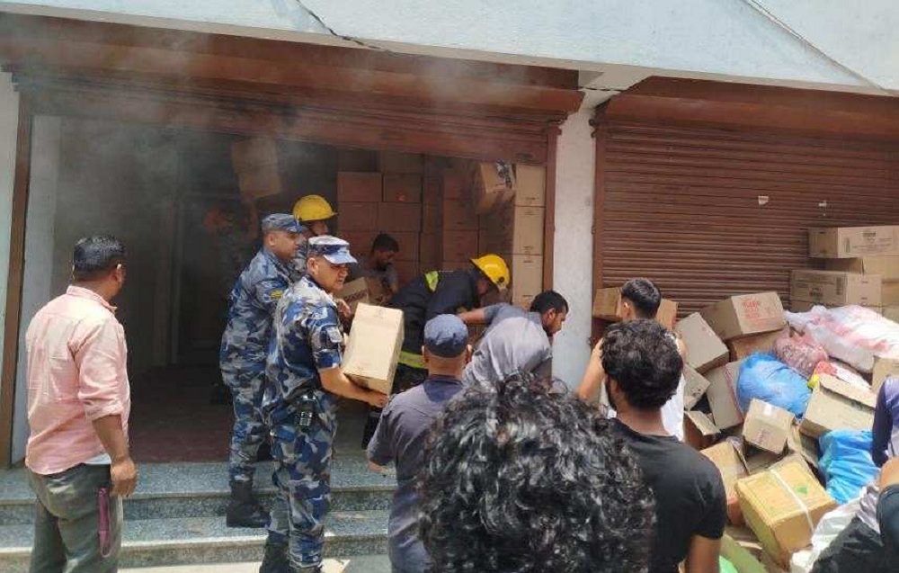 काठमाडौं । काठमाडौं तीनकुनेमा एक गोदाममा लागेको आगो सशस्त्र प्रहरी, अन्य सुरक्षा निकाय र स्थानीय बासिन्दाले दमकलको सहयोगमा नियन्त्रणमा लिएको छ ।