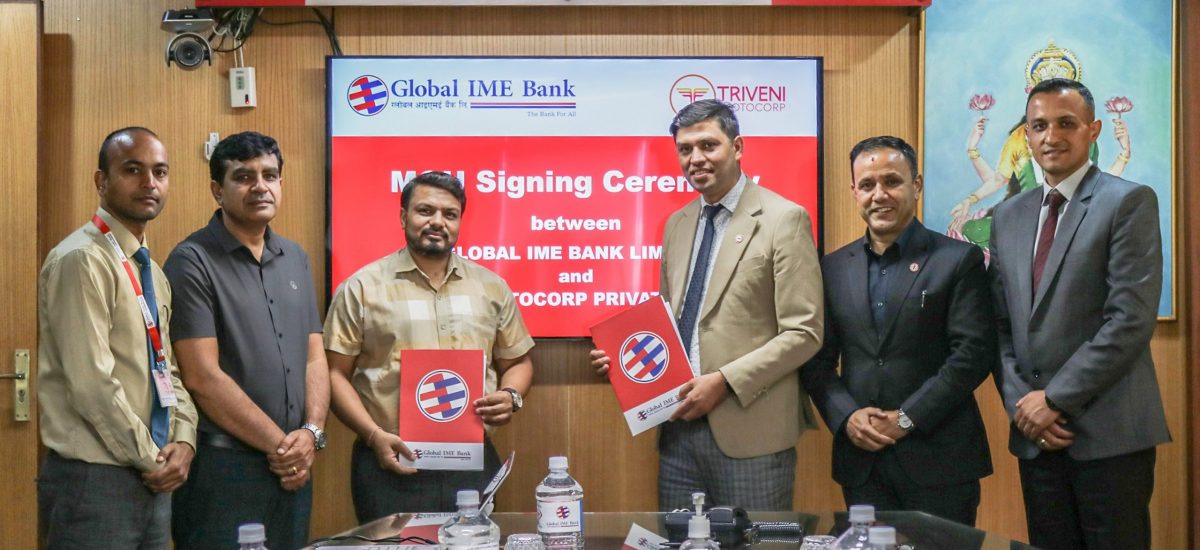 काठमाडौं । ग्लोबल आइएमई बैंक लिमिटेड र त्रिवेणी मोटोकर्प प्रा।लि।बिच विद्युतीय सवारी कर्जासम्बन्धी समझदारी पत्रमा हस्ताक्षर भएको छ ।