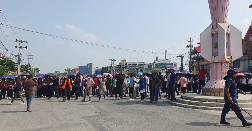 विद्यार्थीले केही समय सडक अवरुद्ध गरेका थिए । बिहीबार दिउँसो रंगेली नगरपालिकाका कार्यवाहक मेयर एवं रंगेली ८ का वडाध्यक्ष ढकप्रसाद आचार्य र प्रमुख प्रशासकीय अधिकृत ओमकारप्रसाद न्यौपानेमाथि विद्यार्थीले दुर्व्यवहार गरेका थिए विद्यार्थीले आक्रमण गर्दा ४ जना नगरप्रहरी सामान्य घाइते भएका थिए ।