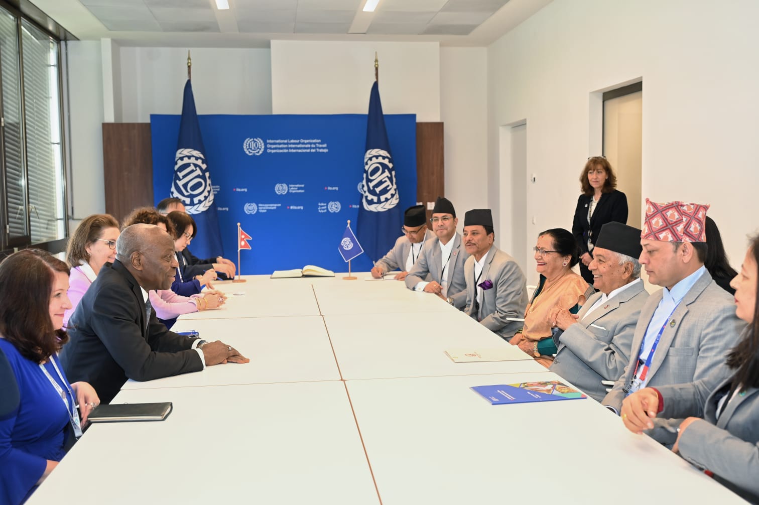 स्वीट्जरल्याण्डको जेनेभामा भएको ११२औँ अन्तर्राष्ट्रिय श्रम सम्मेलनको उच्चस्तरीय सत्रमा आयोजना गरिएको सामाजिक न्यायका लागि विश्वव्यापी गठबन्धनको उद्घाटन सत्रमा मुख्य वक्ताका रुपमा सहभागी हुन पुगेका राष्ट्रपति पौडेल र अन्तर्राष्ट्रिय श्रम सङ्गठनका महानिर्देशक हुंग्बोबीच स्वीजरल्याण्डको जेनेभामा आज भेटवार्ता भएको हो ।