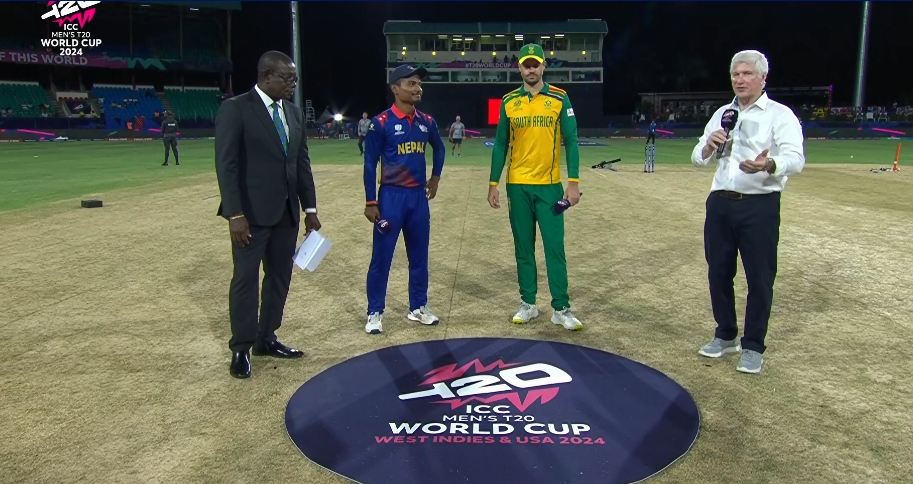 काठमाडौं । आईसीसी टी-२० विश्वकप अन्तर्गत आफ्नो तेस्रो खेलमा नेपालले टस जितेर फिल्ड रोजेको छ। विश्वकप मैदानमा बलियो प्रतिद्वन्द्वी दक्षिण अफ्रिकाले सुरुमा नेपालविरुद्ध ब्याटिङ गर्ने भएको छ। किङ्सटाउनस्थित आर्नोस भेल स्टेडियममा शनिबार बिहान नेपाली समय अनुसार ५ः१५ बजे नेपाल र दक्षिण अफ्रिकाबीचको खेल सुरु हुनेछ। टी–२० क्रिकेटमा नेपाल र दक्षिण अफ्रिकाको यो पहिलो भेट हो। प्रतियोगिताको अघिल्लो चरणमा प्रवेश गर्न नेपाललाई खेल जित्नै पर्ने दबाब छ। दक्षिण अफ्रिका भने यसअघि नै सुपर आठमा प्रवेश गरिसकेको छ। नेपाली टोली नेपाली टिममा रोहितकुमार पौडेल (कप्तान), आसिफ सेख, कुशल भुर्तेल, अनिल शाह, सन्दीप जोरा, दिपेन्द्र सिंह ऐरी, कुशल मल्ल, गुलशन झा, ललित राजबंशी, करण केसी, सोमपाल कामी, सन्दीप लामिछाने, प्रतिस जिसी, अविनाश बोहोरा, सागर ढकाल र कमलसिंह ऐरी ।