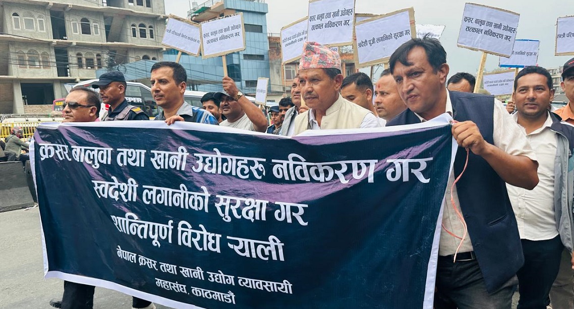 आफूहरुको माग सम्बोधनका लागि पटक–पटक सङ्घीय मामिला तथा सामान्य प्रशासन मन्त्रालय लगायत सरोकारवाला निकायहरुसँग छलफल भए पनि माग सम्बोधन हुन नसकेको नेपाल क्रसर तथा खानी उद्योग व्यवसायी महासंघका अध्यक्ष सीताराम न्यौपानेले बताए।