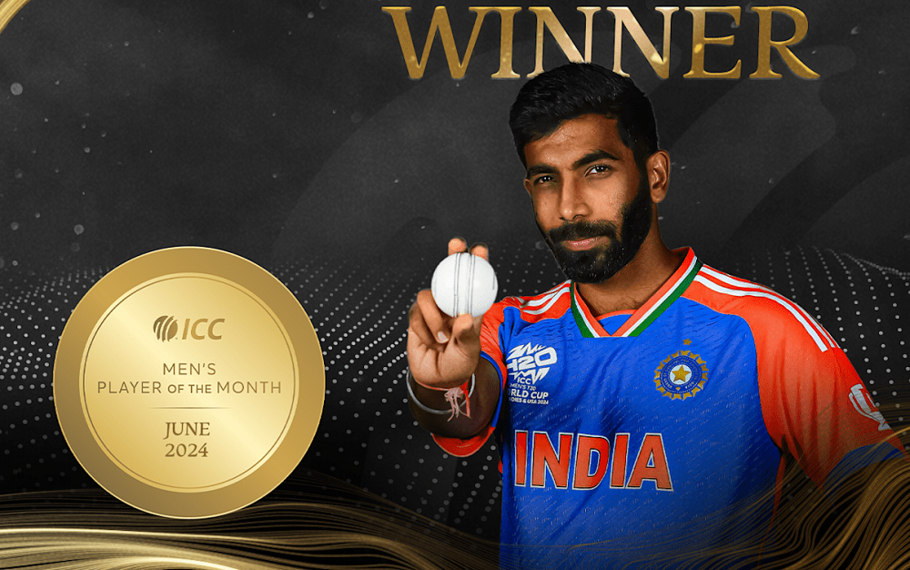 हालै सम्पन्न टी-२० विश्वकपमा भारतलाई उपाधि दिलाउन महत्वपूर्ण भूमिका खेलेका बुमराहले आफ्नै कप्तान रोहित शर्मा र अफगानिस्तानका ओपनर रह्मनुल्लाह गुरबाजलाई पछि पार्दै जुन महिनाको उत्कृष्ट खेलाडी बनेका हुन् ।