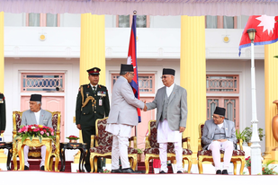 सोमवार प्रधानमन्त्रीको शपथ समारोहमा प्रचण्डले हात मिलाएर ओलीलाई बधाई दिए । आफूलाई विस्थापित गरेर प्रधानमन्त्री बनेका ओलीप्रति प्रचण्डले संसद्मा कटाक्ष गरेका थिए ।