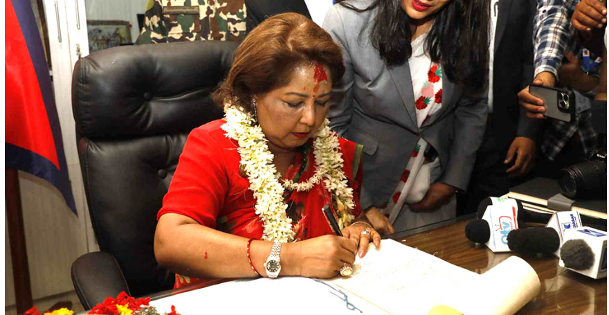 काठमाडौँ। पराष्ट्रमन्त्री डा.आरजु राणा देउवाले पदभार ग्रहण गरेको छिन्। राष्ट्रपति रामचन्द्र पौडेलसमक्ष पद तथा गोपनीयताको शपथ लिए लगत्तै उनले सिंहदरबार पुगेर पदभार ग्रहण गरेको हो।