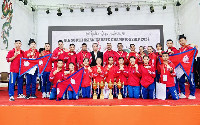 काठमाडौं । नेपाली कराते टोली भुटानको थिम्पुमा भएको आठौँ दक्षिण एसियाली कराते प्रतियोगितामा टिम च्याम्पियन बनेको छ ।